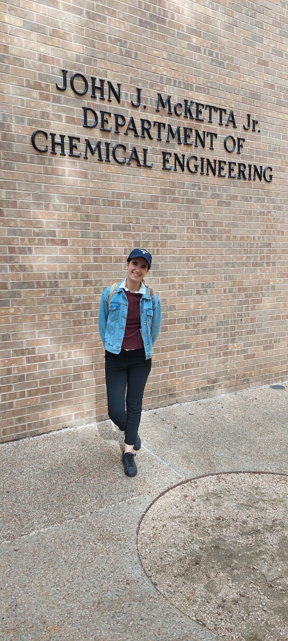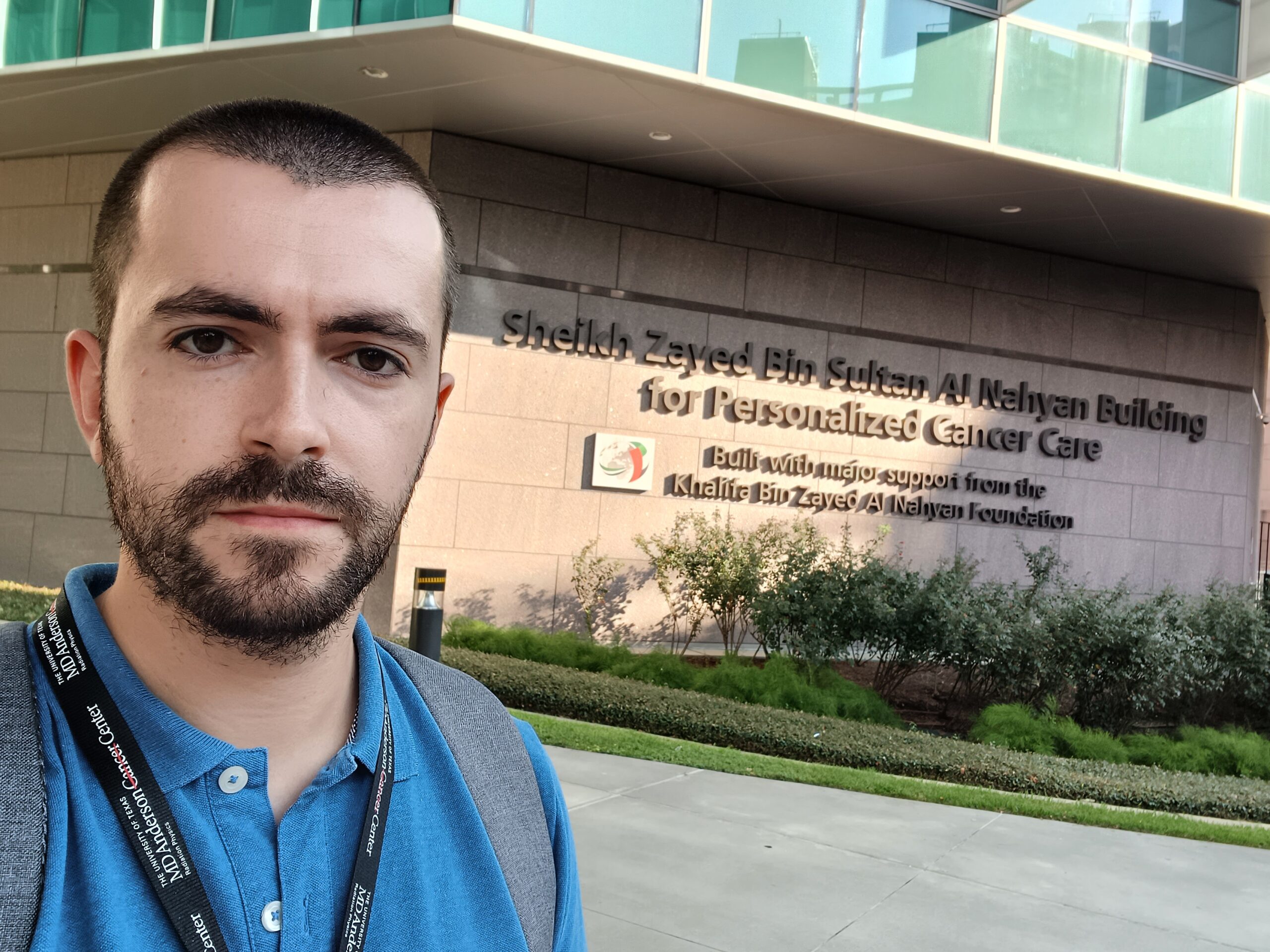 Taking a picture in front of the host institution