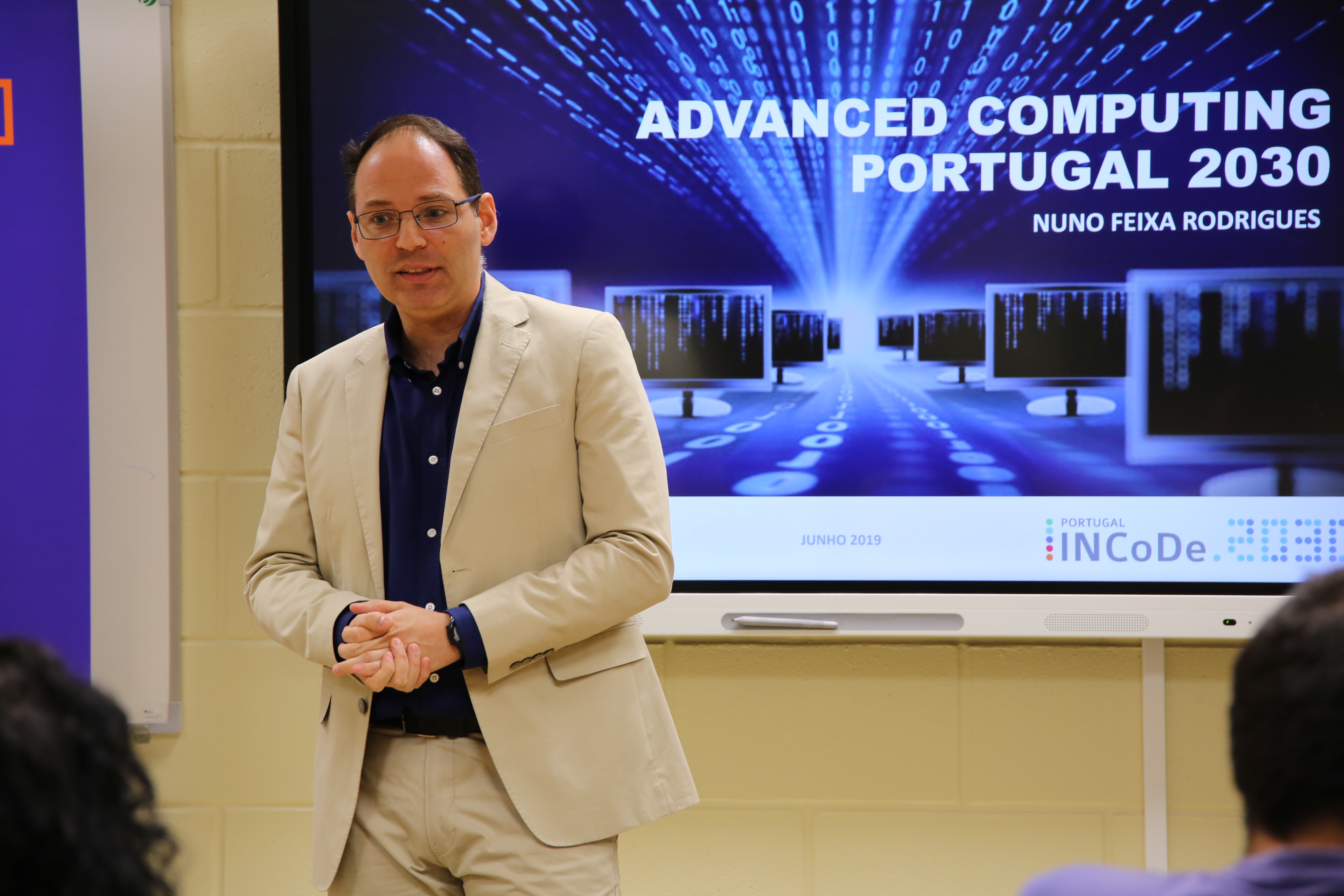 In the last day of training, Nuno Feixa Rodrigues, member of FCT’s Board of Directors, presented the National Strategy for Advanced Computing to the attendees, within the scope of the Portugal InCoDe.2030 program. “Data is the current currency”, he stated, underlying the importance of data analyses and the strategic value of Advanced Computing, applied to a vast number of scientific areas, consequently transforming knowledge into value such as prediction of severe weather, personalized medicine, brain function understanding, advances in material sciences, among others. The main goal of this National Strategy is to promote Portugal as a living lab and a key provider of Advanced Computing software and services, as well as a reference in the training of talented, qualified people, in the hopes of creating “an environment where knowledge and talent materialize into added-valued solutions”, he concluded.